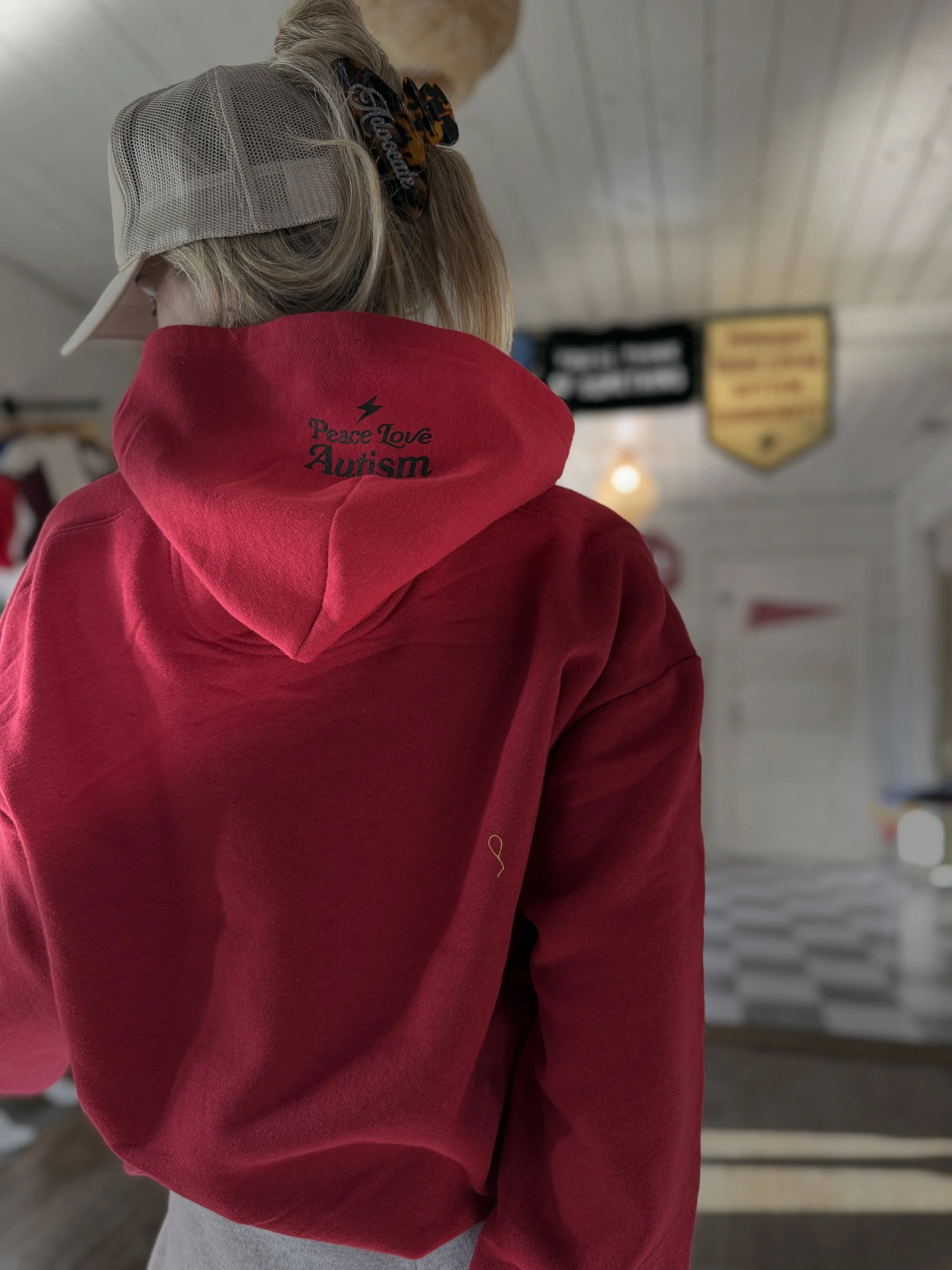 Blue tie dye hoodie with navy ink on front and back. This hoodie runs slightly smaller than other sweatshirts, so size up for oversized fit. Size Chart Linked Here.