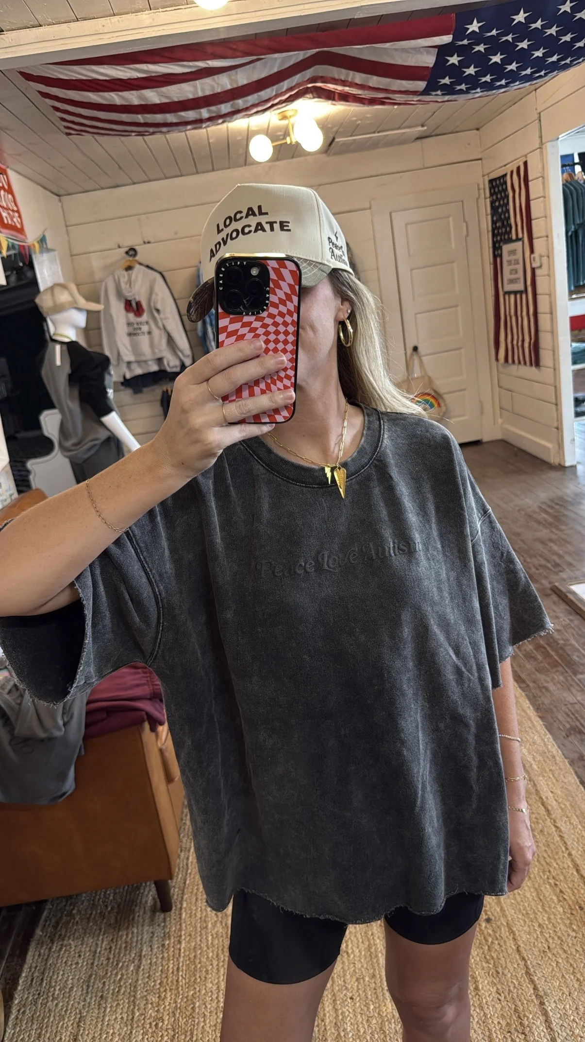 Model is 5’5 wearing a size L (unisex sizing)