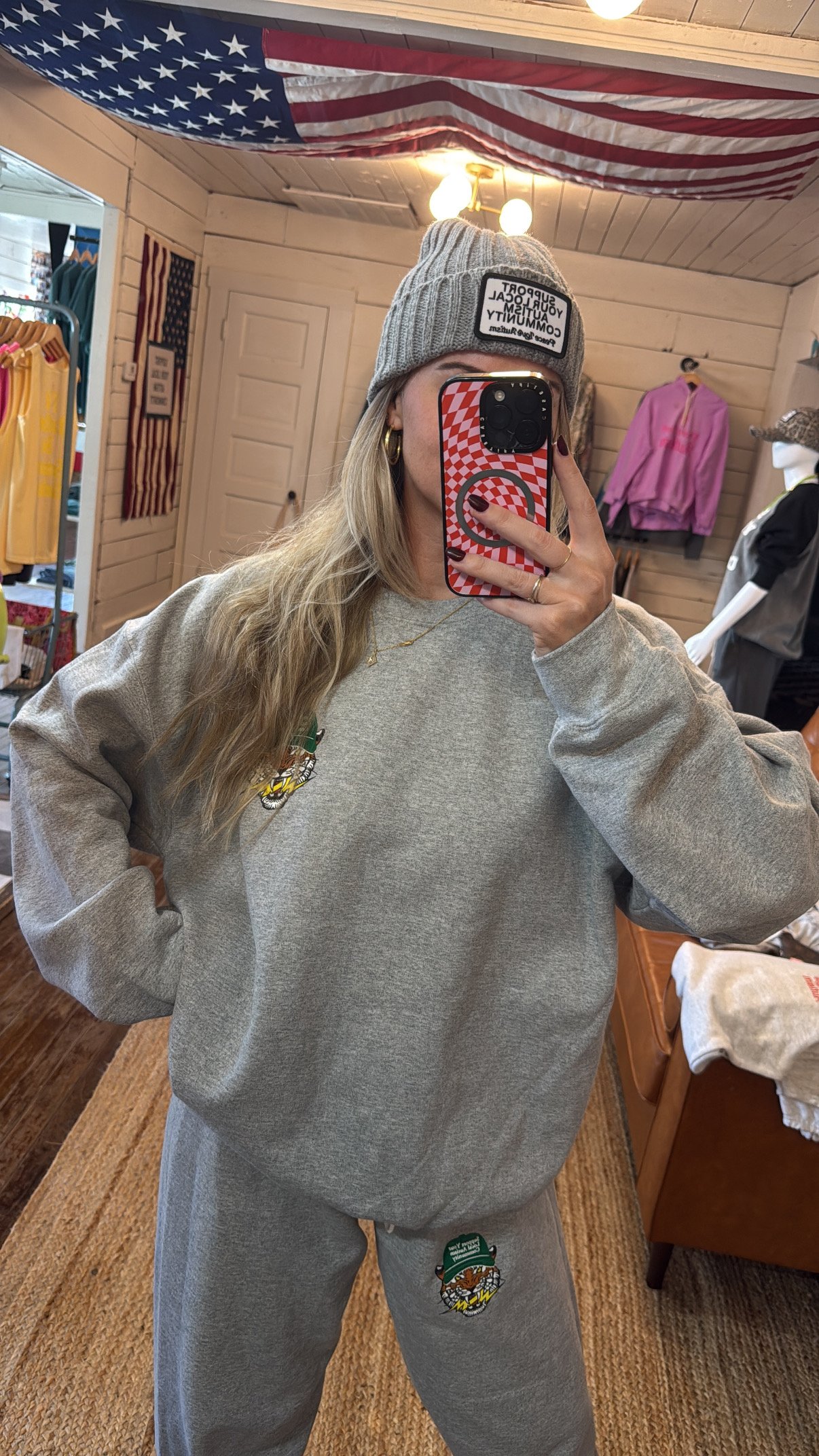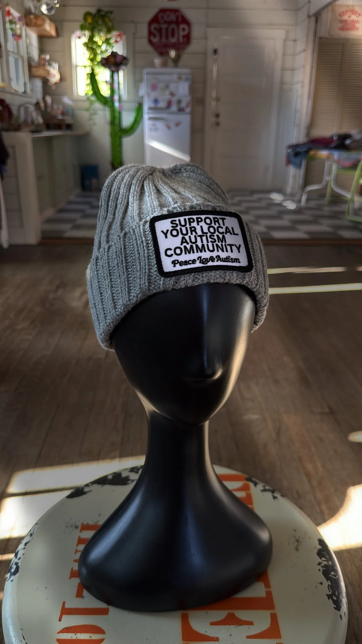 heather grey beanie with sewn on PLA patch. One size fits most.