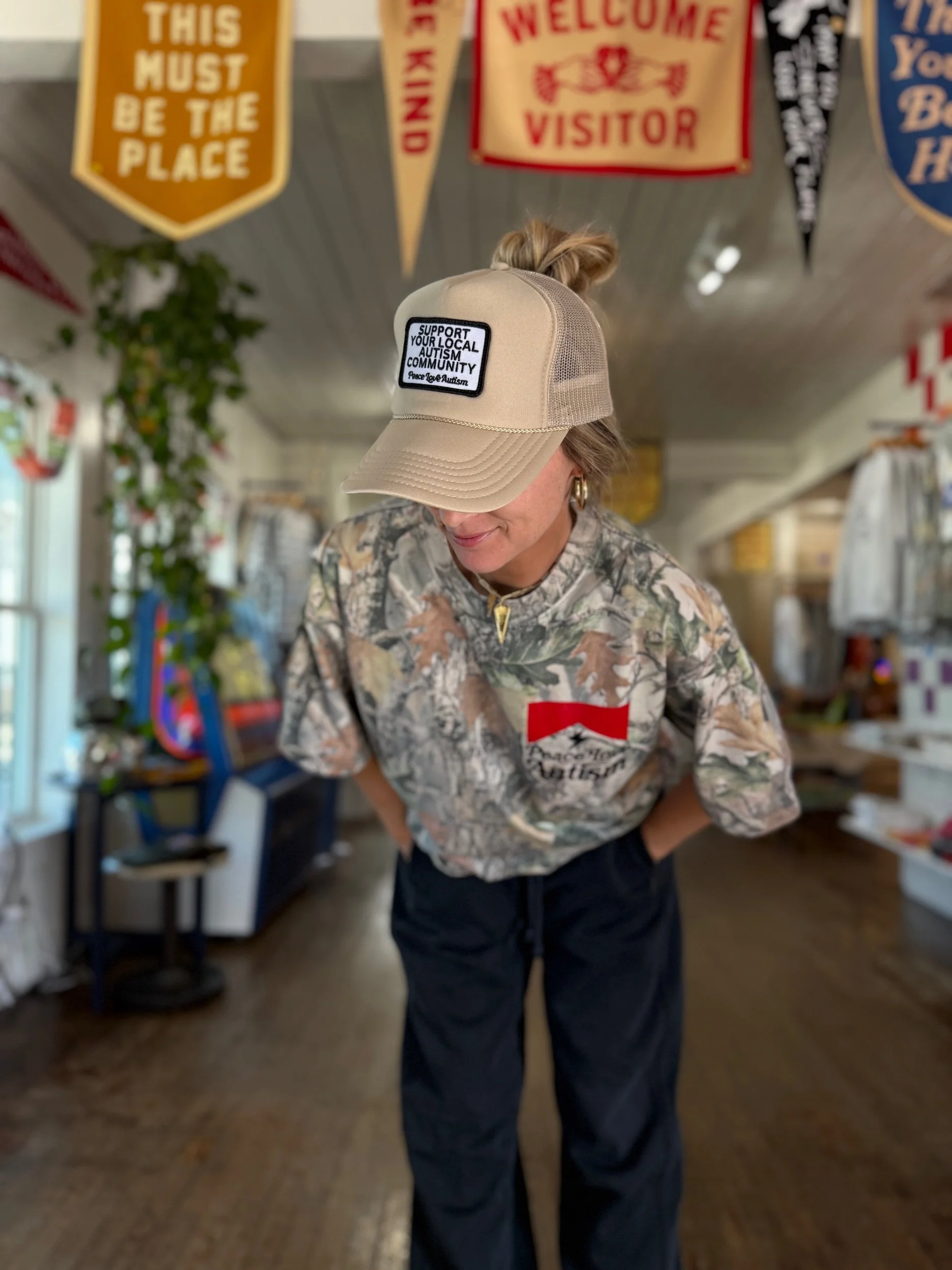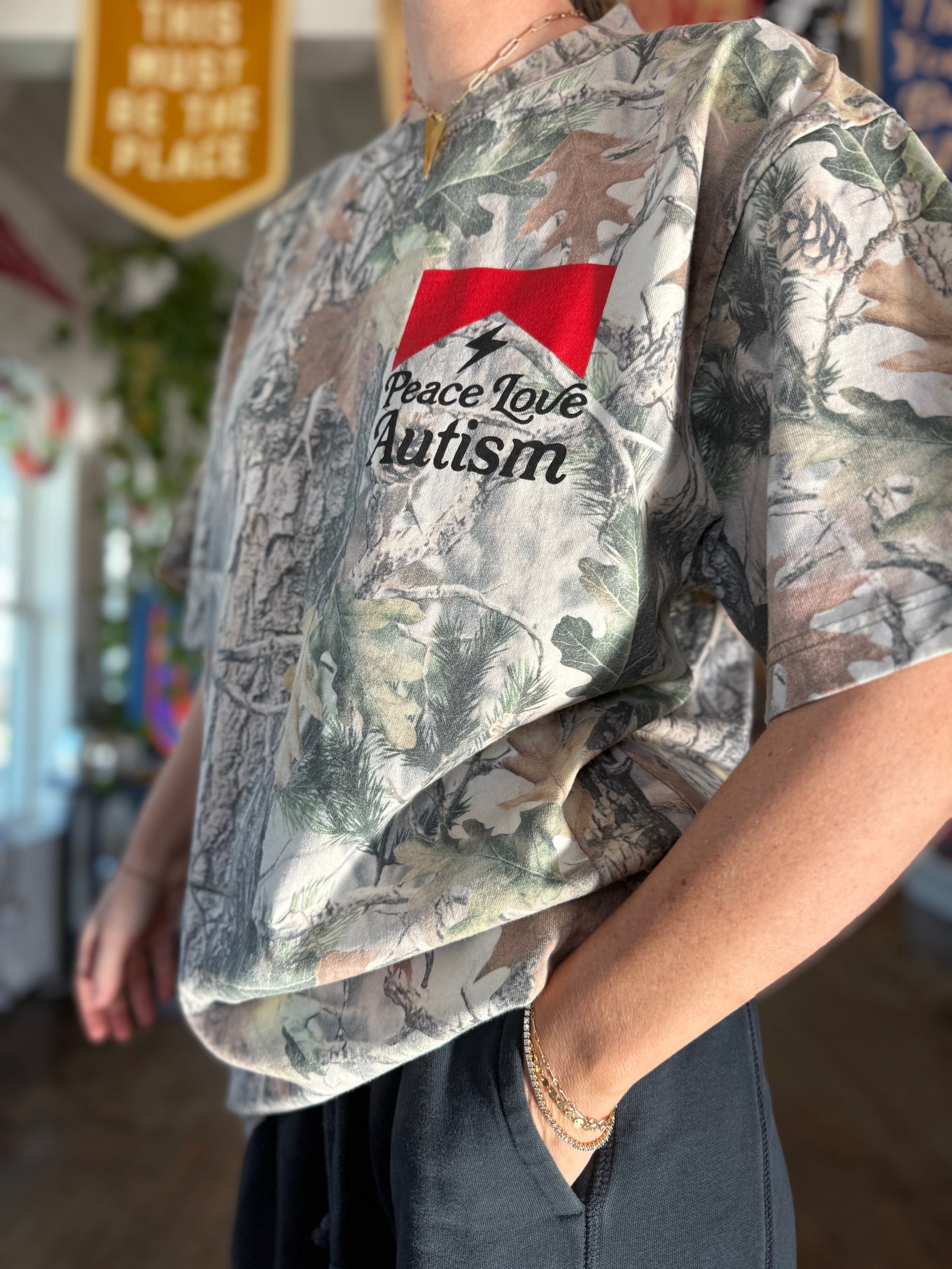 Model is 5’5 wearing a Large (UNISEX)